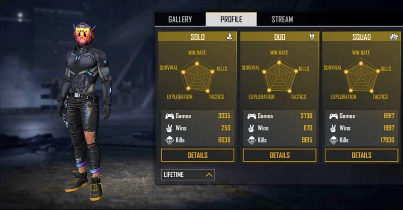 While in the duo mode, he has 670 Booyahs in 3736 games for a win rate of 17.93%. In the process, the streamer has killed 9615 enemies at a K/D ratio of 3.14.